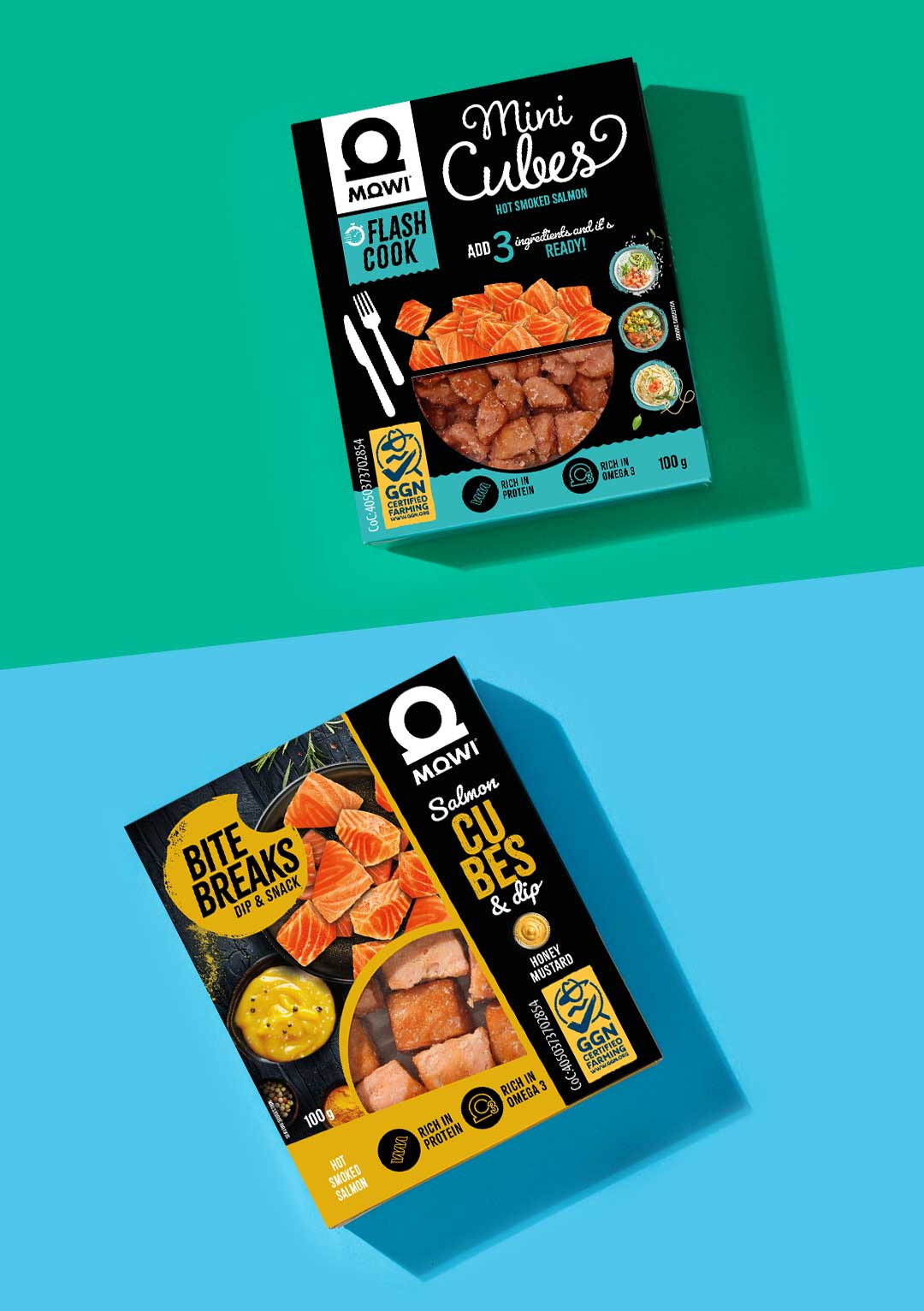 Pyszne kostki Flash Cook MOWI to najprostszy sposób, by cieszyć się smakiem łososia w sałatkach, obiadach, czy śniadaniach! Spróbuj – są gotowe do spożycia, wystarczy je dodać do ulubionych dań!